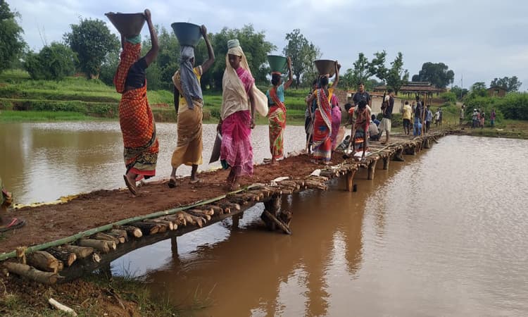 Jharkhand news, Hazaribagh news : चरही (आनंद सोरेन) : हजारीबाग जिला अंतर्गत चरही में वर्षों से पुल की मांग करते आ रहे ग्रामीणों ने श्रमदान कर बांस और लकड़ी से एक चचरी पुल बना डाला. 4 गांवों के आदिवासी महिला-पुरुषों ने मिलकर करीब 200 मीटर चचरी पुल और आधा किलोमीटर सड़क का निर्माण कर दिया. कई वर्षों से निर्माण की आस लिए बैठे ग्रामीणों का सब्र का बांध टूटा और एकजुट होकर श्रमदान से चचरी पुल का निर्माण कर दिया.
