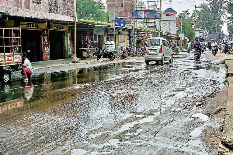 पथ निर्माण विभाग की ओर से करोड़ों खर्च कर एनएच-100 सड़क के दोनों किनारे लंबी दूरी तक नाली बनाया गया है. इसके निर्माण कार्य में गड़बड़ी के कारण बरसात का पानी नाली से निकले के बजाय मुख्य सड़क पर बहता है. कुछ लोग नाली एवं सेप्टिक टंकी का गंदा व बदबूदार पानी बीच सड़क पर निकाल दिया है. वहीं लगातार मानसून से सड़क पर पानी कम नहीं हो रहा है.