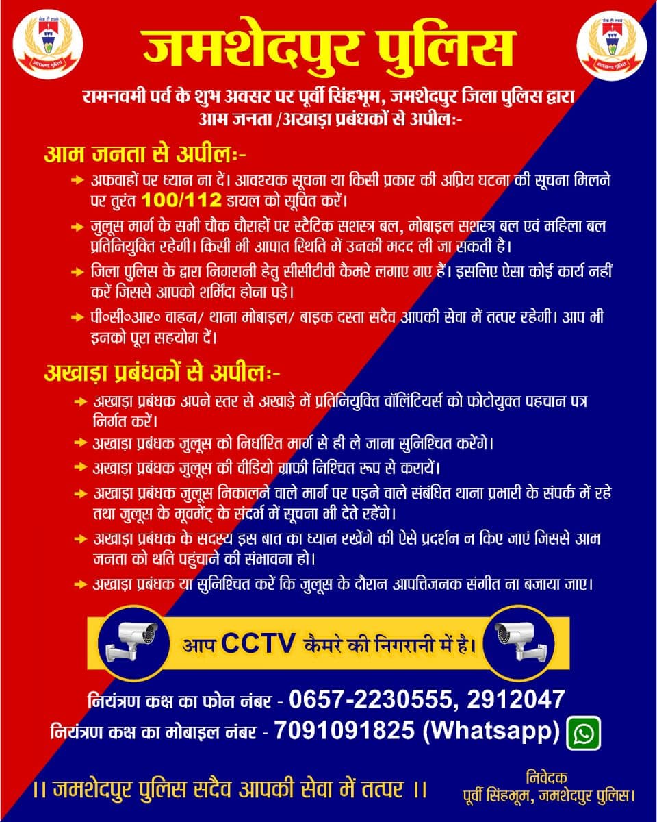 पूर्वी सिंहभूम पुलिस की आम जनता से अपील : –