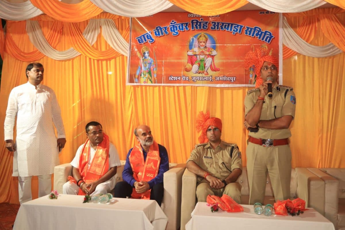 फ्लैग मार्च के दौरान जुगसलाई स्टेशन रोड स्थित वीर कुंवर सिंह अखाड़ा समिति की ओर से एसएसपी किशोर कौशल और सिटी एसपी कुमार शिवाशीष को कमेटी की ओर से पगड़ी पहना कर सम्मानित किया गया. एसएसपी ने कहा कि उन्हे शहर में दूसरी बार रामनवमी के जुलूस में शामिल होने का मौका मिलेगा. उन्होंने लोगाें से शांति व्यवस्था बना कर पर्व को उल्लास के साथ मनाने की अपील की.