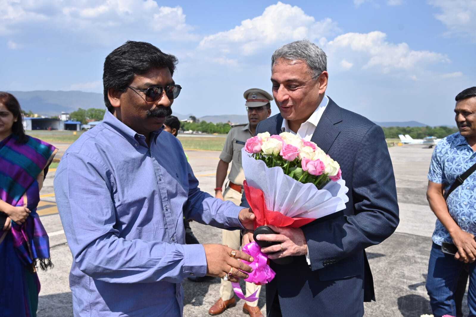 जमशेदपुर के सोनारी एयरपोर्ट पर पूर्वी सिंहभूम की उपायुक्त विजया जाधव ने मुख्यमंत्री हेमंत सोरेन का स्वागत किया. एयरपोर्ट पर ही उन्हें गार्ड ऑफ ऑनर भी दिया गया. पुलिस एवं प्रशासनिक अधिकारियों के साथ-साथ टाटा स्टील के अधिकारियों ने भी मुख्यमंत्री का स्वागत किया.