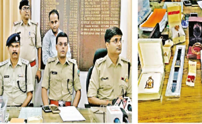 आभूषण (350 ग्राम) कीमत 10.57 लाख, विभिन्न बैंकों का चेक बुक 27 पीस, एटीएम कार्ड 40 (सुनीत गौतम, विनय कुमार व नीलम कुमारी के नाम से), 21 पासबुक, 14 आधार कार्ड, 10 पैन कार्ड, 12 वोटर आइकार्ड, 51 एनइएफटी-आरटीजीएस डिपाजिट फॉर्म, 10 मोबाइल, एक टैब, कलाई घड़ी दो, दो ड्राइविंग लाइसेंस, दो बिग बाजार का कार्ड, 70 पासपोर्ट साइज फोटो, आर्मी मेजर की नकली मुहर, एलपीजी गैस गोदाम/शोरूम से संबंधित लीज पेपर, दो स्टांप पैड, इंडिगाे कार बरामद किया है.