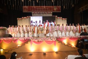 जमशेदपुर. झारखंड और बिहार की 15 बहनों का भगवान शिव के साथ ऐसी लगन लगी कि उन्होंने अपना पूरा जीवन परम शक्ति को समर्पित कर दिया. ये बहनें सोमवार को प्रजापिता ब्रह्माकुमारी ईश्वरीय विश्वविद्यालय की ओर से एक्सएलआरआइ ऑडिटोरियम में आयोजित दिव्य अलौकिक प्रभु समर्पण समारोह में शिव के रंग में रंग गयीं. शिव बाबा सांकेतिक रूप में दूल्हा बने थे. शिवलिंग को पगड़ी पहनायी गयी. बारी-बारी से सभी बहनों ने शिवलिंग पर माला पहनायी. मंगलगीत के साथ सात फेरे लगाये और सांकेतिक रूप से पार्वती बनकर अपना जीवन हमेशा के लिए सेवा को समर्पित कर दिया. जीवन की डोर भगवान शिव संग बांध ली. इस दौरान आज मेरे पिया घर आयेंगे/ सखी मंगल गीत गाओ री जैसे मंगल गीत बजते रहे. कई विवाह व अन्य गीतों पर नृत्य कर खुशियां मनायी गयीं. बराती और परिजनों ने भी नृत्य कर खुशियां मनायीं.