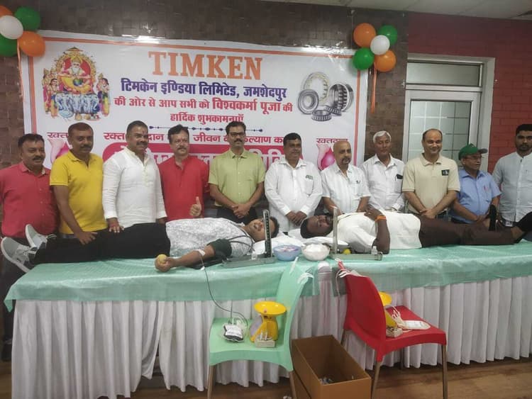वरीय संवाददाता जमशेदपुर टिमकेन कंपनी परिसर में मंगलवार को शिल्पी देव भगवान विश्वकर्मा पूजा के मौके पर कर्मचारियों ने पूजा-अर्चना कर कंपनी और कर्मचारियों की खुशहाली की कामना की. इसके उपरांत हर साल की तरह रक्तदान शिविर में हिस्सा लिया. रक्तदान शिविर में 171 कर्मियों ने रक्तदान किया. जिससे 171 यूनिट रक्त संग्रह किये गये. कंपनी के कैंटीन हॉल में एक दिवसीय रक्तदान शिविर में जमशेदपुर ब्लड बैंक के संजय चौधरी, प्लांट के जीएम राजीव शाश्वत, एजीएम दिनेश सिंह, हिमांशु मिश्रा, यूनियन अध्यक्ष आस्तिक महतो, महामंत्री विजय यादव सहित यूनियन के सभी पदाधिकारियों ने रक्तदाताओं का हौसला बढ़ाया. शिविर के सफल आयोजन में सहयोग के लिए जमशेदपुर ब्लड बैंक एंड वॉलंटरी ब्लड डोनेशन एसोसिएशन का विशेष रूप से योगदान रहा.