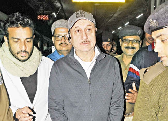 स्टेशन पर अनुपम खेर को देखने उमड़ी भीड़, आज होगी शूटिंग