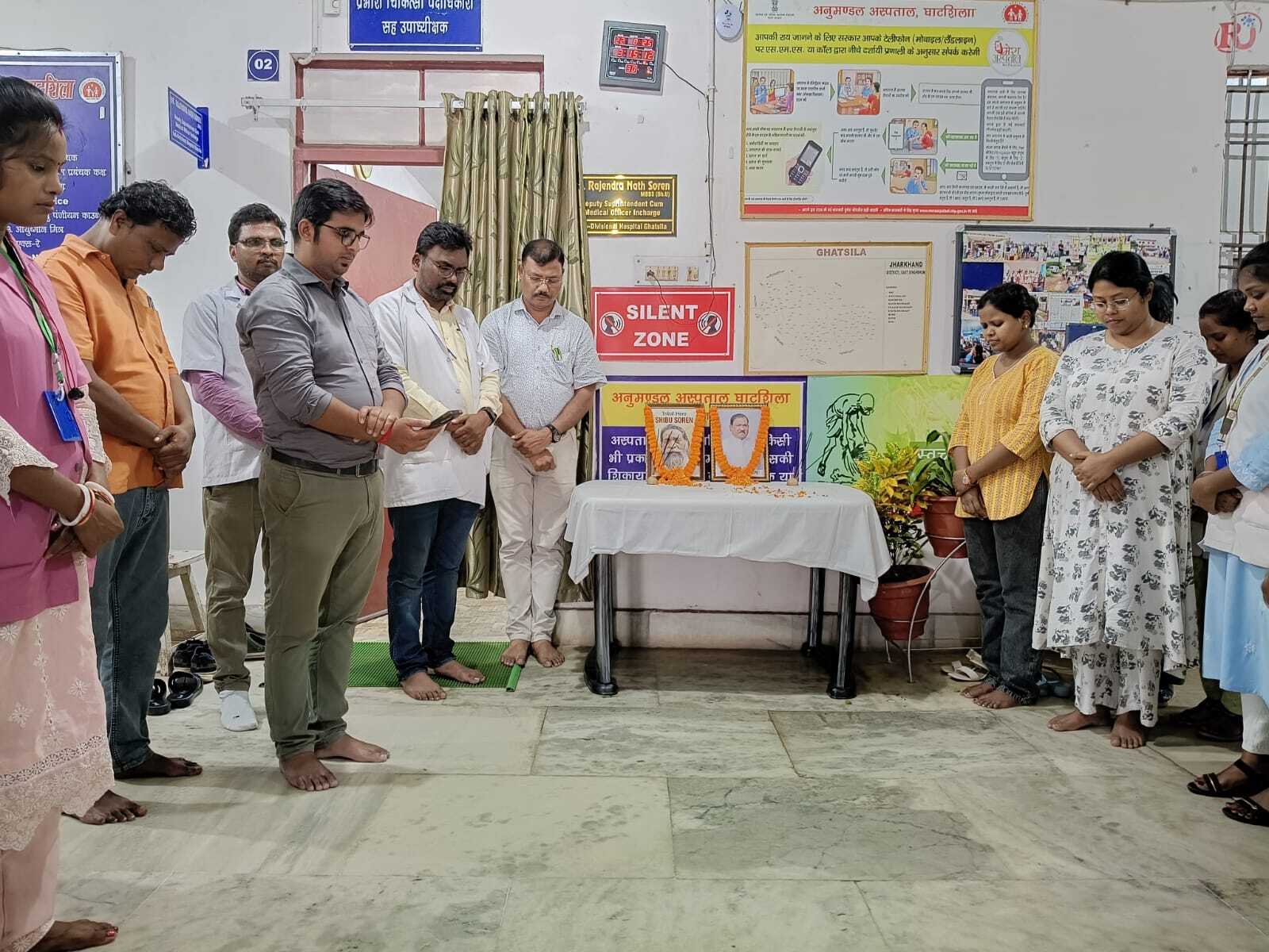 अनुमंडल अस्पताल घाटशिला में शुक्रवार को श्रद्धांजलि सभा का आयोजन किया गया. इसमें स्व. शिबू सोरेन व रामदास सोरेन को श्रद्धांजलि दी गयी. इसके साथ ही उनकी आत्मा की शांति के लिए दो मिनट का मौन रखा गया. इस दौरान प्रभारी चिकित्सा पदाधिकारी डॉ आरएन सोरेन, डॉ भोगान हेंब्रम, विशेषज्ञ चिकित्सक डॉ शंकर टुडू , चिकित्सा पदाधिकारी डॉ एम हांसदा, चिकित्सा पदाधिकारी डॉ शिप्रा जेसी, मयंक सिंह, प्रखंड कार्यक्रम प्रबंधक एवं अस्पताल के अन्य कर्मी उपस्थित थे.डिस्क्लेमर: यह प्रभात खबर समाचार पत्र की ऑटोमेटेड न्यूज फीड है. इसे प्रभात खबर डॉट कॉम की टीम ने संपादित नहीं किया है