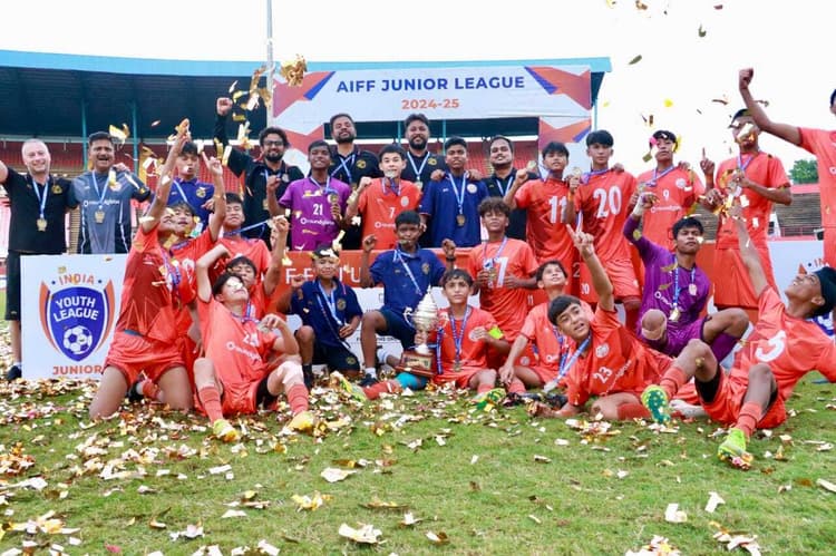जमशेदपुर. पंजाब एफसी की टीम ने शानदार प्रदर्शन करते हुए एआइएफएफ अंडर-15 फुटबॉल लीग का खिताब जीत लिया है. बुधवार को जेआरडी टाटा स्पोर्ट्स कॉम्पलेक्स में खेले गये फाइनल मैच में पंजाब एफसी की टीम ने मिनर्वा एफसी को 1-0 से मात दी. पंजाब की ओर से के विकास सिंह ने मैच के 40वें मिनट में निर्णायक गोल किया. पंजाब एफसी का यह जूनियर फुटबॉल टूर्नामेंट में लगातार दूसरा खिताब है. इस सीजन पंजाब एफसी ने एआइएफएफ अंडर-17 यूथ लीग का खिताब भी अपने नाम किया था.