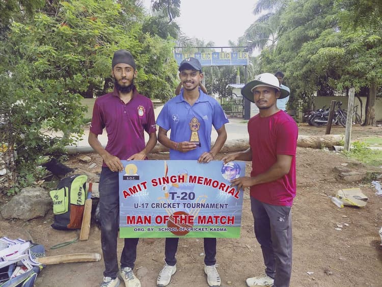 जमशेदपुर. कदमा स्थित राजीव नायर ग्राउंड में आयोजित द्वितीय अमित सिंह मेमोरियल टी-20 क्रिकेट प्रतियोगिता में केपीएफ एकादश की टीम विजयी रही है. बुधवार को खेले गये मुकाबले में केपीएफ एकादश की टीम ने सूरज ब्लास्टर्स को 144 रन से हराया. केपीएफ की टीम ने 20 ओवर में चार विकेट पर 293 रन बनाए. शिवम मुखी ने 94, राहुल अग्रवाल ने 76 व यश राज ने 59 रनों की पारी खेली. जवाब में सूरज ब्लास्टर्स की टीम 17.4 ओवर में 149 रन पर सिमट गयी. राहुल अग्रवाल ने शानदार गेंदबाजी करते हुए पांच विकेट लिये. राहुल को प्लेयर ऑफ द मैच घोषित किया गया.