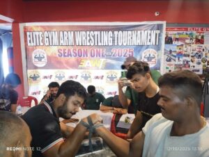 जमशेदपुर. टेल्को घोड़ाबांधा स्थित एलाइट जिम में रविवार को आर्म रेसलिंग का आयोजन किया गया. इसमें 75 खिलाड़ियों ने अपने बाजूओं की ताकत दिखायी. अर्पण कुमार को चैंपियन ऑफ चैंपियंस के खिताब से नवाजा गया. प्रतियोगिता के दौरान मुख्य अतिथि के रूप में मास्टर्स एथलेटिक्स एसोसिएशन ऑफ झारखंड के अध्यक्ष विजय सिंह, पूर्व अंतरराष्ट्रीय एथलीट गुरदेव सिंह, एसके तोमर , राजेंद्र पाटिल, रोहन कुमार, श्याम शर्मा व सिदेश सिंह मौजूद थे. प्रतियोगिता के दौरान चार अलग-अलग भार वर्ग में स्पर्धाएं हुई. 44-55 किलो भार वर्ग में इशु मिश्रा विजेता बने. सौरभ दूसरे व वर्धन तीसरे स्थान पर रहे. 55-65 किलो भार वर्ग में इशु डिलेन पहले, नितिक गुप्ता दूसरे व पृथ्वी कुमार तीसरे स्थान पर रहे. 65-75 किलो भार वर्ग में स्वर्णजीत पोद्दार पहले, सूरज दूसरे व अनमोल तीसरे स्थान पर रहे. 85 किलो से अधिक भार वर्ग में अर्पण कुमार विजेता, संदकर पांडे उपविजेता व सौभिक मंडल तीसरे स्थान पर रहे.