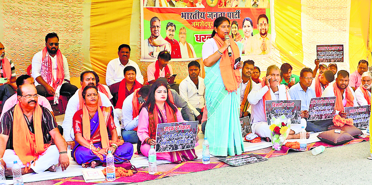 भाजपा जमशेदपुर महानगर के तत्वावधान में सोमवार को स्थानीय पांच मंडलों सुंदरनगर, घाघीडीह, बागबेड़ा, जुगसलाई और परसुडीह क्षेत्र में व्याप्त विभिन्न जनसमस्याओं को लेकर टाटानगर रेलवे स्टेशन चौक पर एकदिवसीय धरना दिया गया. महानगर अध्यक्ष सुधांशु ओझा के नेतृत्व में आयोजित इस धरने में मंडल अध्यक्षों, कार्यकर्ताओं, जिला पदाधिकारियों, मोर्चा अध्यक्षों के साथ पार्टी के कई वरिष्ठ नेतागण शामिल हुए. सुबह 10 बजे से दोपहर 2 बजे तक चले धरने के दौरान भाजपा कार्यकर्ताओं ने जिला प्रशासन से आगामी पर्व-त्योहारों को देखते हुए जरूरी सुविधाओं के त्वरित प्रबंध की मांग की. धरना समाप्ति के बाद उपायुक्त के नाम एक ज्ञापन सौंपकर उचित और शीघ्र कार्रवाई की मांग की गयी. भाजपा ने ज्ञापन के माध्यम से बताया कि क्षेत्रों में बुनियादी सुविधाओं के अभाव और प्रशासनिक लापरवाही के कारण आम जनता को भारी कठिनाइयों का सामना करना पड़ रहा है. सड़क, पानी, बिजली, स्वच्छता, ट्रैफिक जाम, नशाखोरी, अवैध कारोबार और नगर परिषद गठन जैसी समस्याओं के तत्काल समाधान किया जाये. धरना को संबोधित करते हुए जिलाध्यक्ष सुधांशु ओझा ने टाटानगर रेलवे स्टेशन पार्किंग में अवैध वसूली एवं विभिन्न क्षेत्रों में व्याप्त जनसमस्याओं पर जमकर हमला बोला. उन्होंने कहा कि भाजपा अब खामोश बैठने वाली नहीं है. यदि पंद्रह दिनों के अंदर उचित कार्रवाई और समाधान नहीं हुआ तो भाजपा जिला मुख्यालय का घेराव करने सड़क पर उतरेगी.तत्काल ठोस कदम नहीं उठाये गये, तो भाजपा करेगी आंदोलन : डॉ मीरा मुंडा