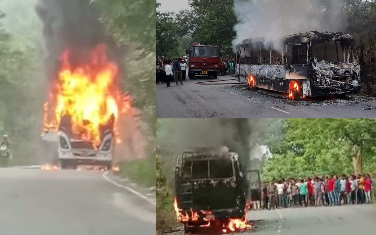 Jharkhand News: पूर्वी सिंहभूम के टाटा-पटमदा मुख्य सड़क पर ठनठनी घाटी में सोमवार की शाम करीब पांच बजे टाटा से बोकारो जाने वाली कल्याणी नामक बस में अचानक आग लगी. इस दौरान बस धू-धू कर जलकर खाक हो गयी. हालांकि, इससे पहले ड्राइवर बुलेट चंद्र महतो की सूझबूझ से सभी यात्रियों को सुरक्षित उतार लिया गया.