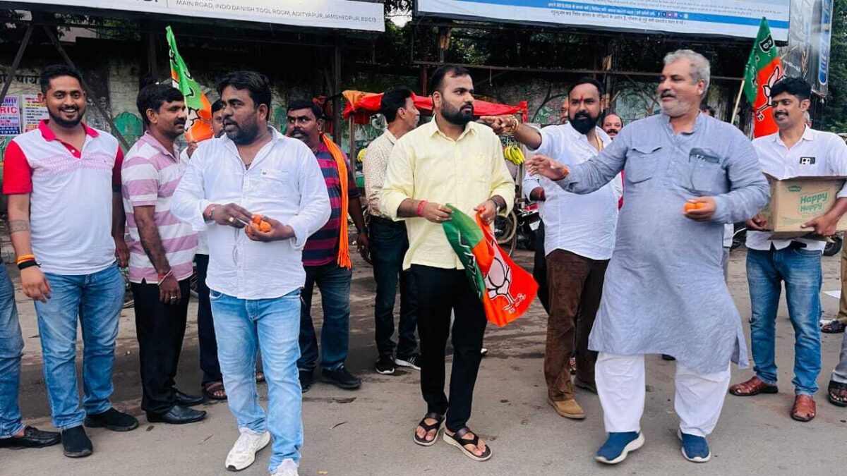 Jamshedpur news. सीपी राधाकृष्णन के उप राष्ट्रपति बनने पर साकची में आतिशबाजी व लड्डू वितरण