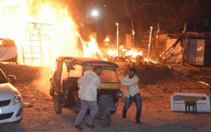 जमशेदपुर: कदमा शास्त्रीनगर ब्लॉक नंबर दो में रविवार की शाम दो समुदायों के बीच पत्थरबाजी और हंगामे के बीच युवकों में से किसी ने ताबड़तोड़ फायरिंग कर दी. सूचना मिलने पर पहुंची पुलिस ने भी हवाई फायरिंग कर पत्थरबाजी कर रहे लोगों को तितर-बितर करने का प्रयास किया. लेकिन पत्थरबाजी के बाद असामाजिक तत्वों ने दुकान और वाहनों में भी आग लगा दी. इससे छह दुकानें और दो बाइक जल गयी, जबकि एक बाइक को क्षतिग्रस्त कर दिया गया. सूचना मिलने पर झारखंड अग्निशमन और टाटास्टील की दो दमकल गाड़ी मंगायी गयी, जिसके बाद आग पर काबू पाया गया. करीब तीन घंटे तक चली पत्थरबाजी में एसएसपी प्रभात कुमार समेत कई पुलिसकर्मी घायल हो गये. पुलिस ने पत्थरबाजी व हंगामा कर रहे 60 से ज्यादा युवकों को एक धार्मिक स्थल से हिरासत में लिया है. उन्हें वज्र वाहन से थाना भेजा गया. क्षेत्र में तनाव का माहौल है. घटना की जानकारी मिलने पर उपायुक्त विजया जाधव भी घटनास्थल पर पहुंचीं.