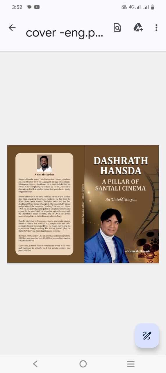 संताली सिनेमा से लंबे समय से जुड़े रमेश हांसदा ने लेखन के क्षेत्र में महत्वपूर्ण पहल की है. उन्होंने प्रसिद्ध संताली फिल्मकार दशरथ हांसदा के योगदान को केंद्र में रखकर संताली सिनेमा पर एक पुस्तक लिखी है, जिसका नाम है, संताली सिनेमा और दशरथ हांसदा एक अनकही कहानी (हिंदी), संताली सिनेमा आर दशरथ हांसदा हाक जियोंन काहनी (संताली ओल चिकी) और दशरथ हांसदा ए पिलर ऑफ संताली सिनेमा एन अनटोल्ड स्टोरी ( अंग्रेजी), यह पुस्तक तीन भाषाओं में प्रकाशित होने जा रही है. पुस्तक लगभग 100 पृष्ठों की है, जिसमें लेखक ने अपने वर्षों के अनुभव, शोध और संकलन के आधार पर संताली सिनेमा के विकास यात्रा को क्रमबद्ध रूप में प्रस्तुत किया है. पुस्तक में संताली सिनेमा के प्रारंभिक दौर, गंगाधर हेंब्रम की वीडियो फिल्म ‘सारथी नाचार’ से लेकर पहले सेल्युलाइड फिल्म ‘चांदो लिखोन’ तक का विवरण विस्तृत रूप में दिया गया है. पुस्तक में दशरथ हांसदा द्वारा निर्मित प्रमुख फिल्मों-सगुना एना सुहाग दुलड, सीता नाला रे सागुन सुपारी के निर्माण के साथ-साथ झारखंड के प्रमुख राजनेताओं रामदास सोरेन, हेमंत सोरेन, अर्जुन मुंडा और रघुवर दास की सिनेमा क्षेत्र में भूमिका का भी उल्लेख किया गया है. खास बात यह है कि किस प्रकार इन नेताओं ने सिनेमा के माध्यम से जनसंपर्क और सामाजिक जागरुकता को बढ़ावा दिया, इसे भी पुस्तक में बारीकी से दर्शाया गया है. पुस्तक में दशरथ हांसदा की निजी जीवन यात्रा को भी छूते हुए उनके संघर्ष, सपनों और उपलब्धियों को सजीव रूप में प्रस्तुत किया गया है. रमेश हांसदा ने कहा कि इस पुस्तक के प्रकाशन के बाद, यह उम्मीद की जा रही है कि संताली सिनेमा पर शोध करने वाले विद्यार्थियों, फिल्म प्रेमियों और भाषा-संस्कृति के जानकारों के लिए यह एक मील का पत्थर साबित होगी. यह केवल एक दस्तावेज नहीं, बल्कि संताली सिनेमा के इतिहास को सहेजने और आगे बढ़ाने का एक सशक्त माध्यम बन सकती है. संताली भाषा, जो भारतीय संविधान की आठवीं अनुसूची में सम्मिलित है, एक समृद्ध सांस्कृतिक धरोहर है. इस भाषा के विकास में कई साहित्यकारों, कलाकारों और समाजसेवियों का महत्वपूर्ण योगदान रहा है. पंडित रघुनाथ मुर्मू से लेकर हजारों लेखकों तक, सभी ने इस भाषा को सशक्त बनाने में निरंतर प्रयास किया है. भाषा के प्रचार-प्रसार में सिनेमा की भूमिका अत्यंत महत्वपूर्ण रही है.डिस्क्लेमर: यह प्रभात खबर समाचार पत्र की ऑटोमेटेड न्यूज फीड है. इसे प्रभात खबर डॉट कॉम की टीम ने संपादित नहीं किया है
