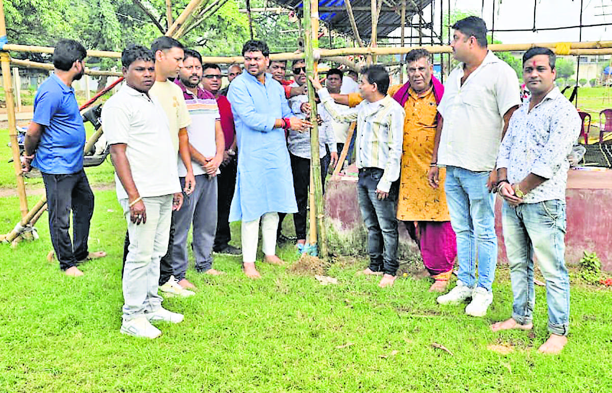 बर्मामाइंस टीआरएफ मैदान में श्रीश्री सार्वजनिक काली पूजा समिति के पूजा मंडप निर्माण कार्य का साेमवार को भूमि पूजन किया गया. पुजारी गौरंगो दास ने विधि-विधान व मंत्रोच्चार के साथ पूजा की. काली पूजा पंडाल निर्माण 2 लाख की लागत से होगा. मौके पर समिति के मुख्य संरक्षक महावीर मुर्मू यजमान के रूप में शामिल हुए. काली पूजा के दौरान हर दिन भोग का वितरण किया जायेगा. साथ ही रंगारंग सांस्कृतिक कार्यक्रम का आयोजन होगा. इस अवसर पर बासु राव, प्रवीण पांडेय, राजेश प्रसाद, धीरज सिंह, जितेंद्र सिंह, शुभ शंकर झा, अभिषेक सिंह, भोला पांडेय, राजू मुखी, चंदन पांडेय, अमित ठाकुर, मनोज तांती, करण कालिंदी, अशोक राव समेत अन्य मौजूद थे.डिस्क्लेमर: यह प्रभात खबर समाचार पत्र की ऑटोमेटेड न्यूज फीड है. इसे प्रभात खबर डॉट कॉम की टीम ने संपादित नहीं किया है