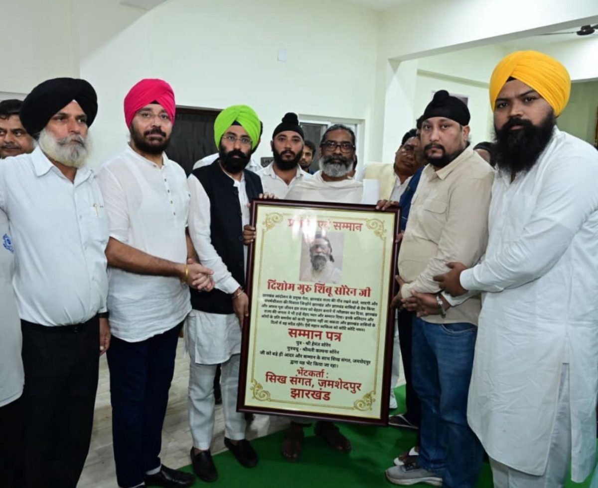 Jamshedpur news. शिबू सोरेन की देन को याद कर सिख समाज ने सौंपा मान पत्र