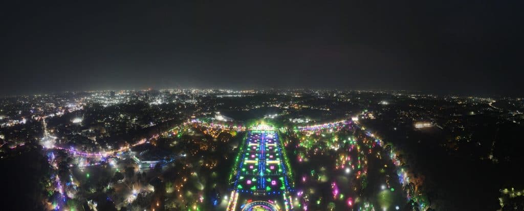 लाइटिंग के दौरान सुरक्षा के लिए पुख्ता इंतजाम किए गए हैं. 200 पुलिसकर्मी, 150 निजी सुरक्षाकर्मी और 100 स्काउट एंड गाइड के जवान तैनात हैं. पूरे क्षेत्र की निगरानी सीसीटीवी से हो रही है और दो वॉच टावर भी लगाए गए हैं.