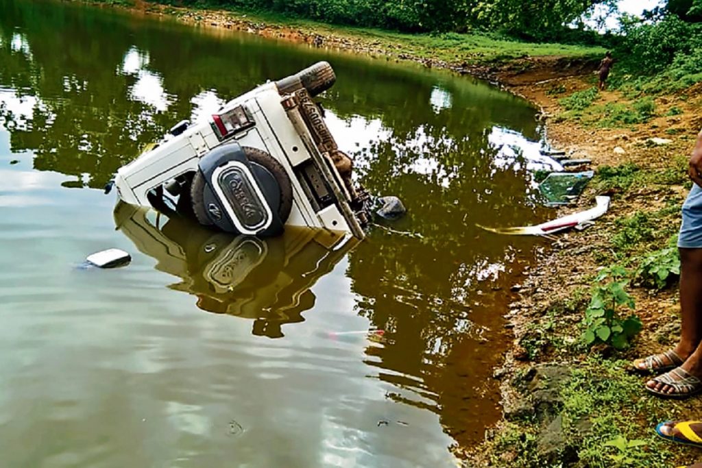 जमशेदपुर : बोलेरो तालाब में डूबी, बचाये गये यात्री