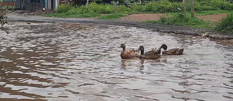 – सड़क पर गड्ढा है या गड्ढा में सड़क समझ में ही नहीं आता है. सड़क की स्थिति तालाब जैसी हो गयी है. जल जमाव इतना ज्यादा है कि बतख तैर रहे हैं. अभिषेक पांडेय, स्थानीय