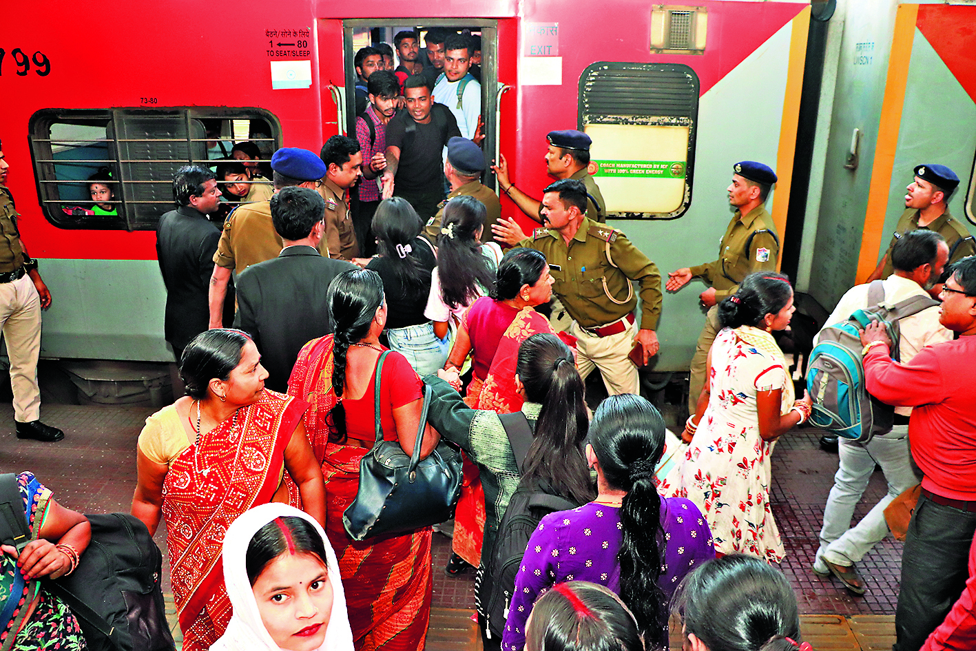 टाटानगर से जम्मूतवी जाने वाली ट्रेन में एक बार फिर से महाकुंभ जाने वाले यात्रियों की भारी भीड़ जुटी. हालात का अंदाजा इस बात से लगाया जा सकता है कि करीब 500 सीटों वाले जनरल बोगी में करीब 2 हजार से अधिक यात्रियों को सवार कर भेजा गया. यात्रियों को चढ़ाने के लिए ट्रेन दो बार रोकी गयी. इस दौरान भीड़ नियंत्रण को लेकर जबरदस्त इंतजाम किये गये थे. डीआरएम तरुण हुरिया खुद मोर्चे पर थे. जबकि आरपीएफ और रेलवे के कई आला अधिकारी खुद मॉनिटरिंग कर रहे थे. स्लिपर, एसी समेत अन्य बोगी में यात्रियों को टिकट लेकर ही इंट्री दी गयी. इस दौरान लोगों को फटकार भी लगायी गयी, ताकि लाइन को बनाकर रखा जा सके. स्काउट गाइड, आरपीएफ और जीआरपी के अलावा जिला पुलिस की टीम को तैनात किया गया था. टिकट चेक कर सबको बारी-बारी से टाटा-जम्मूतवी ट्रेन पर चढ़ाकर रवाना किया गया. ट्रेन में पांच जनरल कोच लगाया गया था, जिसमें महिलाओं का अलग कोच था. डीआरएम ने बताया कि कुल 22 कोच की इजाजत होती है. उससे ज्यादा कोच नहीं लगाया जा सकता था. लिहाजा, जितना कोच था, उसमें यात्रियों को भेजा गया. किसी तरह की कोई परेशानी का सामना नहीं करना पड़ा.यात्रियों को चढ़ाने के लिए दो बार ट्रेन को रोका गयाभीड़ को नियंत्रित करने तथा लाइन को बनाकर रखने के लिए यात्री को स्टेशन पर प्रवेश कराने को लेकर डीआरएम के निर्देश पर कंप्यूटर आरक्षण केंद्र से लेकर स्टेशन के प्रवेश तक रस्सी की बैरिकेडिंग की गयी थी. दोपहर 3:00 से ही यात्रियों की भीड़ होनी शुरू हो गयी थी. यात्रियों को ड्रॉपिंग लेन वीआइपी लेन होते हुए कंप्यूटर आरक्षण केंद्र होते हुए शेड के रास्ते स्टेशन पर प्रवेश कराया गया. प्रवेश गेट पर ही टीटी ने एक-एक यात्रियों के टिकट की जांच कर स्टेशन पर इंट्री दिलायी. डीआरएम एक-एक यात्रियों से पूछताछ कर रहे थे. प्लेटफॉर्म नंबर एक से टाटा-जम्मूतवी एक्सप्रेस ट्रेन को रवाना किया गया. इस दौरान दो बार ट्रेन को रोका गया, ताकि यात्री आराम से चढ़ जायें. आरपीएफ द्वारा लगातार अनाउंसमेंट कर यात्रियों को प्लेटफॉर्म पर गेट में नहीं लटकने, धीरे-धीरे तथा लाइन पर खड़े होकर अपने टिकट दिखाने के निर्देश दिये जा रहे थे. यात्रियों से चलती ट्रेन में न चढ़ने की अपील की गयी.