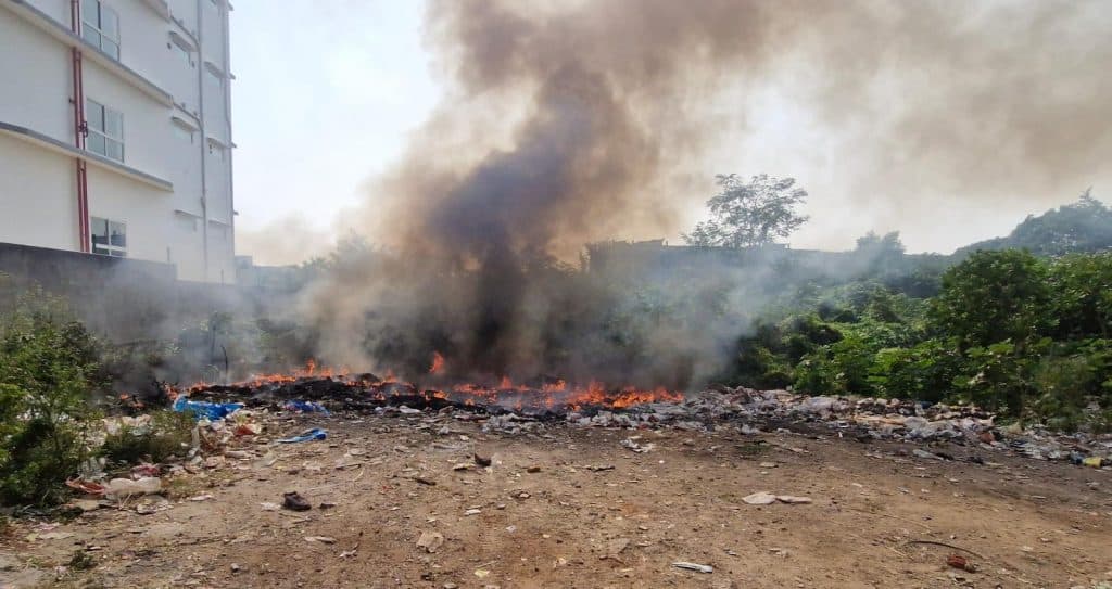 कचरे के ढेर में आग से हवा हो रही जहरीली