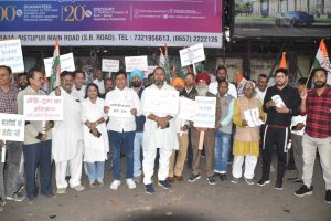 साकची गोलचक्कर पर कांग्रेस पार्टी ने अमेरिका के अन्यायपूर्ण निर्वासन के खिलाफ किया प्रदर्शन