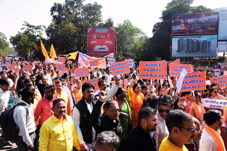 बांग्लादेश में हिन्दुओं पर हमले के खिलाफ सनातनियों ने निकाली आक्रोश रैली
