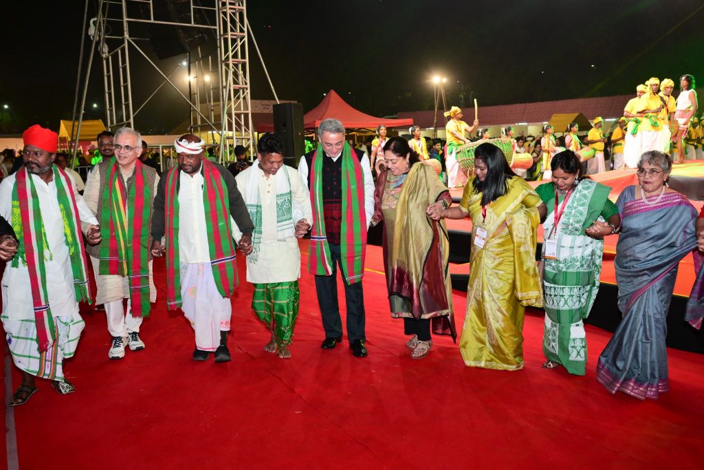 सांस्कृतिक विविधता और धरोहर का उत्सव, संवाद-ए-ट्राइबल कॉन्क्लेव का 11वां संस्करण शुक्रवार को बिष्टुपुर स्थित गोपाल मैदान में नगाड़ों की ध्वनि से गूंज उठा. कार्यक्रम का विधिवत शुभारंभ टाटा स्टील के प्रबंध निदेशक टीवी नरेंद्र, टाटा स्टील के उपाध्यक्ष चाणक्य चौधरी, धाड़ दिशोम देश परगना बैजू मुर्मू, हो समाज के पीढ़ मानकी गणेश पाठ पिंगुवा, जुगसलाई ताेरोफ परगना दशमत हांसदा, भूमिज समाज के प्रधान उत्तम सिंह सरदार, सोमरा खड़िया व शेखर मांडी ने प्रकृति में जीवन व सुख- समृद्धि का प्रतीक जावा का अनावरण कर किया.नगाड़ों की थाप ने वातावरण में एक अद्वितीय उल्लास का संचार किया, जैसे धरती की गूंज को स्वर्ग से मिलाने वाली कोई आवाज हो. इस सांस्कृतिक संगम के आरंभ में, धाड़ दिशोम बैजू मुर्मू, हो समाज के पीढ़ मानकी गणेश पाठ पिंगुवा, जुगसलाई के दशमत हांसदा, भूमिज समाज के प्रधान उत्तम सिंह सरदार और अन्य सामाजिक नेतृत्वकर्ता एकत्र हुए, जिन्होंने इस आयोजन को न केवल प्रारंभ किया, बल्कि इसके माध्यम से जनजातीय संस्कृति के अटल अस्तित्व को भी प्रस्तुत किया.इस संवाद कार्यक्रम में भारत की 168 जनजातियों के लगभग 2500 प्रतिनिधि उपस्थित थे, जिन्होंने अपनी अनमोल परंपराओं, कला और संस्कृति का प्रदर्शन किया. धरती आबा बिरसा मुंडा की जयंती पर आयोजित इस अनूठे जनजातीय सम्मेलन ने न केवल इतिहास के पन्नों से जुड़ी महाकविता की याद दिलायी, बल्कि जनजातीय समुदाय की मौलिकता, संघर्ष और आत्मनिर्भरता की आवाज को भी उच्चारित किया. यह आयोजन उस अदृश्य धारा को प्रकट करता है, जो सशक्त होकर जनजातीय समुदायों की सांस्कृतिक पहचान को संरक्षित करती है.कलर्स ऑफ झारखंड में दिखी विविधता व संस्कृति की अनुपम छंटा