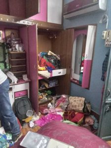 गोलमुरी थाना अंतर्गत टुइलाडुंगरी बी- ब्लाॅक निवासी मधुसूदन जोशी के घर का ताला तोड़कर 15 लाख के गहने समेत 30 हजार रुपये नकद की चोरी हो गयी. घटना गुरुवार रात 9.30 से 10.40 बजे के बीच की है. मधुसूदन जोशी परिवार के साथ सिदगोड़ा सूर्य मंदिर में आयोजित एक शादी समारोह में गये थे. लौटने के बाद जब मेन गेट का ताला खोल अंदर गये तो कमरों की स्थिति देखकर हैरान रह गये. अलग-अलग कमरे में रखे चार अलमारी का लॉक तोड़कर और एक अलमीरा का लॉक खोलकर करीब 15 लाख के गहने व नकद 30 हजार रुपये की चोरी कर ली गयी. चोरों ने एक आलमारी को दूसरे रूम में ले जाकर उसका लॉक तोड़ा. करीब सवा घंटे के अंदर ही पूरी वारदात को अंजाम देकर आराम से फरार हो गये.रेकी कर घटना को अंजाम देने का संदेह