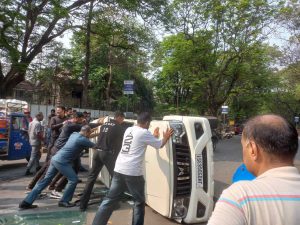 Jamshedpur News: बिष्टुपुर : कार से टक्कर के बाद बोलेरो पलटी