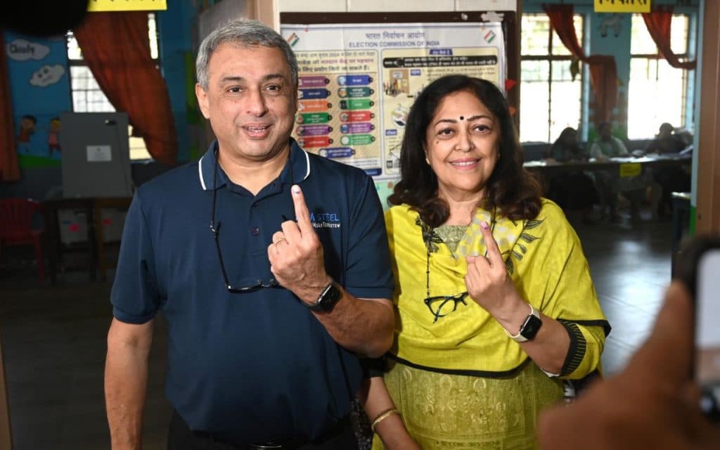 टाटा स्टील के एमडी टीवी नरेंद्रन ने जमशेदपुर में अपना वोट डाला. उन्होंने पत्नी रुचि नरेंद्रन के साथ अपने मताधिकार का इस्तेमाल किया. टीवी नरेंद्रन ने जमशेदपुर के लोयोला स्कूल में बने मतदान केंद्र में जाकर वोट किया.