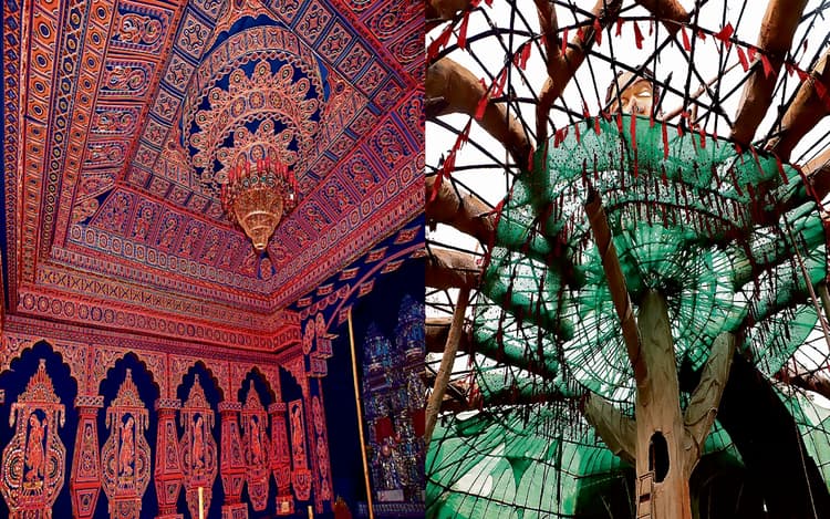 मुख्य कारीगर कोलकाता के दीपक ने बताया कि इंटीरियर डिजाइन में प्राचीन मंदिर का रूप दिखाया गया है. दीवारों पर प्राचीन कलाकृति उकेरी गयी है. जिसे इस तरह से रंगा गया है कि तांबे के समान नजर आता है. दीवारों पर प्राचीन मंदिर की तरह मशाल नजर आयेगी. काई और कजली भी नजर आयेगी. उन्होंने बताया कि लाइट के इफेक्ट से यह सचमुच का प्राचीन मंदिर नजर आयेगा.
