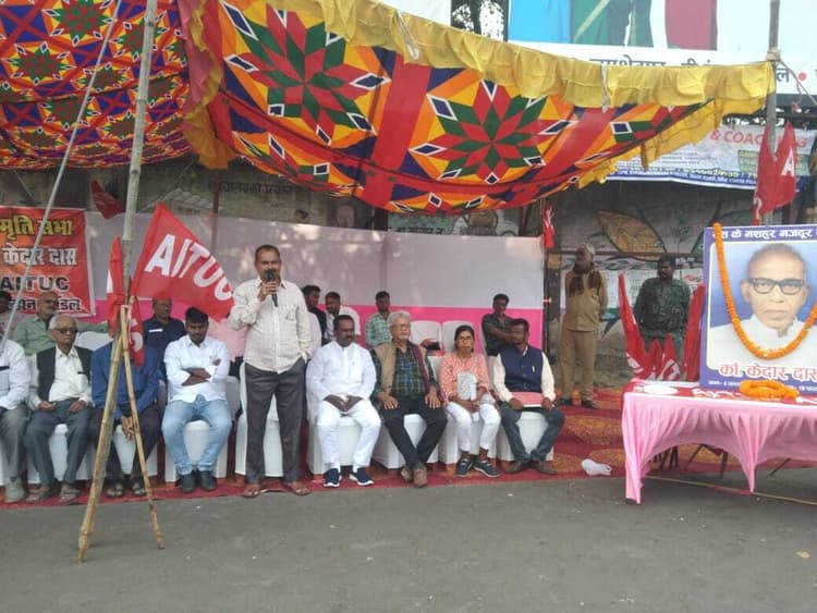पूर्व निर्धारित कार्यक्रम के अनुसार एटक कोल्हान प्रमंडल के नेतृत्व में मजदूर नेता कॉमरेड केदार दास की पुण्यतिथि को स्मृति दिवस के रूप में साकची गोलचक्कर में आयोजित किया गया. सभा की अध्यक्षता कोल्हान प्रमंडल के संरक्षक वरिष्ठ साथी बी सिंह ने की. सभा के प्रारंभ में अंबुज ठाकुर के नेतृत्व में एटक एवं अन्य मजदूर संगठन के झंडे और नारे के साथ सरकार बिल्डिंग के नीचे स्थित शहीद मंगल कालिंदी एवं पैट्रिक पोल के स्मारक स्थल पर पुष्प अर्पित कर श्रद्धांजलि दी गयी. सभा का संचालन राज्य एटक के कार्यकारिणी सदस्य कामरेड हीरा अरकने ने किया. इस इस अवसर पर केदार दास के चित्र पर फूल माला अर्पण कर उन्हें श्रद्धांजलि दी गयी. मुख्य वक्ता के रूप में राज्य एटा के सचिव अंबुज ठाकुर ने केदार दास को मजदूरों का मसीहा बताया. इस अवसर पर जुगसलाई के विधायक मंगल कालिंदी ने भी केदार दास के चित्र पर पुष्प अर्पित कर उन्हें श्रद्धांजलि देते हुए उन्हें मजदूरों का सच्चा हितैषी बताया. इस अवसर पर एटक के जिला उपाध्यक्ष आरएस राय, धनंजय शुक्ला, सीटू के गुप्तेश्वर सिंह, जीके मजूमदार, एस राजू तथा एटक केएस विश्वकर्मा, श्रवण कुमार और एआइएसएफ के राज्य सचिव विक्रम कुमार ने भी सभा को संबोधित किया. अंत में एटक के जिला संरक्षक बीएन सिंह ने अपने अध्यक्षीय भाषण में केदार दास को श्रद्धांजलि दी.डिस्क्लेमर: यह प्रभात खबर समाचार पत्र की ऑटोमेटेड न्यूज फीड है. इसे प्रभात खबर डॉट कॉम की टीम ने संपादित नहीं किया है