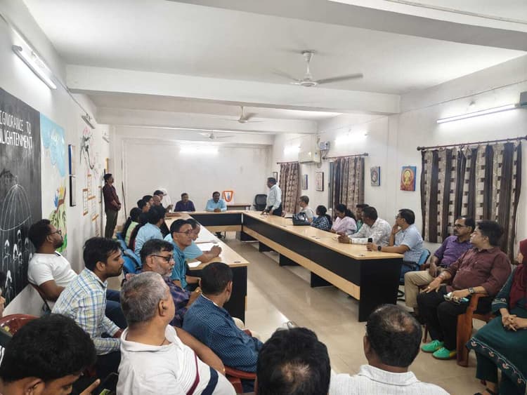 झारखंड के दिवंगत शिक्षा मंत्री एवं कोल्हान विश्वविद्यालय के सीनेट सदस्य रहे रामदास सोरेन के सम्मान में विश्वविद्यालय सभागार में बुधवार को शोकसभा आयोजित की गयी. कार्यक्रम की शुरुआत विश्वविद्यालय के अधिकारियों, संकायाध्यक्षों, विभागाध्यक्षों, शिक्षकों और कर्मचारियों द्वारा स्व. सोरेन के चित्र पर पुष्प अर्पित कर श्रद्धांजलि देने से हुई. इसके बाद उनकी आत्मा की शांति के लिए दो मिनट का मौन रखा गया. शोकसभा का संचालन सीसीडीसी डॉ. आर.के. चौधरी ने किया. उन्होंने रामदास सोरेन की जीवनी पर प्रकाश डालते हुए बताया कि घाटशिला कॉलेज के विकास में उनका महत्वपूर्ण योगदान रहा है. विश्वविद्यालय के डीएसडब्ल्यू डॉ. संजय यादव ने शोक संदेश पढ़ा. इस मौके पर एफए के.के. मिश्रा, प्रोक्टर डॉ. राजेंद्र भारती, रजिस्ट्रार डॉ. परशुराम सिआल, सीवीसी डॉ. संजीव आनंद, डॉ. तपन खंडरा, डॉ. एम.ए. खान, सिंडिकेट सदस्य डॉ. संजय कुमार, सीनेट सदस्य डॉ. दारा सिंह गुप्ता, पीके पाणी सहित बड़ी संख्या में शिक्षक और कर्मचारी उपस्थित थे.डिस्क्लेमर: यह प्रभात खबर समाचार पत्र की ऑटोमेटेड न्यूज फीड है. इसे प्रभात खबर डॉट कॉम की टीम ने संपादित नहीं किया है