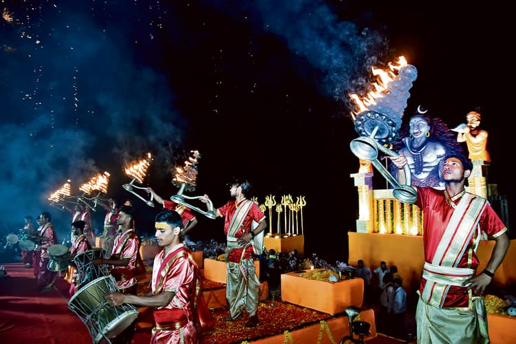 सोनारी दोमुहानी घाट पर महाशिवरात्रि के अवसर पर बुधवार को बनारस-हरिद्वार की गंगा आरती की तर्ज पर सुवर्णरेखा महाआरती का आयोजन किया गया. बनारस से आये 11 पंडितों ने सुवर्णरेखा घाट पर पारंपरिक विधि-विधान से आरती की. इस दौरान काशी और हरिद्वार की तरह महाआरती का नजारा दिखा. साथ ही वहां का माहौल कुंभमय हो गया था. आरती में हजारों की संख्या में श्रद्धालु शामिल हुए. घाट पर आरती के दौरान भव्य नजारा दिखा. आकर्षक विद्युत सज्जा से पूरा नदी घाट जगमगा उठा. आरती के दौरान काफी देर तक घाट पर आतिशबाजी की गयी.महाआरती देखने के लिए दोमुहानी में बनाये गये मंच से लेकर मरीन ड्राइव तक लोगों की इतनी भीड़ दिखी कि पैर रखने तक की जगह नहीं थी. देर तक भजनों ने भक्तों को यहां शिव की आराधना में सराबोर रखा. पूर्व मंत्री बन्ना गुप्ता पत्नी सुधा गुप्ता के साथ शिव की आराधना करते रहे. इस अवसर पर राकेश्वर पांडेय, आनंद बिहारी दुबे, रामाश्रय प्रसाद, बबन राय, कमल अग्रवाल, मनोज झा, प्रभात ठाकुर, ईश्वर सिंह, बबुआ झा, बबन शुक्ला, अजय मिश्रा समेत अन्य गणमान्य लोग उपस्थित रहे. बता दें कि दोमुहानी घाट पर चार साल पहले बन्ना गुप्ता ने भव्य धार्मिक समारोह के आयोजन की शुरुआत की थी.
