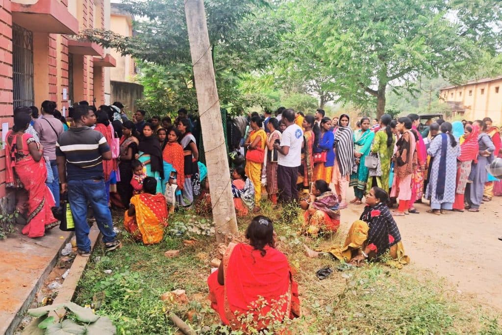 मंईयां सम्मान योजना के लिए जमशेदपुर में हर दिन लगती है लंबी कतार. फोटो : प्रभात खबर