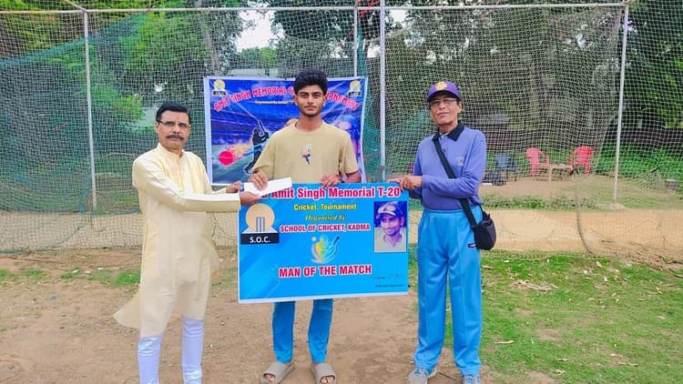 जमशेदपुर. लिंक रोड, कदमा स्थित एलआइसी मैदान में खेले जा रहे अमित सिंह मेमोरियल टी-20 क्रिकेट लीग के एक मैच में मास्टर एकादश की टीम ने बीएलएससीसी को छह विकेट से मात दी. बीएलएससीसी की टीम ने पहले बल्लेबाजी करते हुए 18.2 ओवर में दस विकेट पर 162 रन बनाये. चिन्मय चिराग ने 36 रन बनाये. मास्टर एकादश के लक्ष्य प्रकाश ने तीन व पारसनाथ राउत ने दो विकेट लिये. जवाब में मास्टर एकादश की टीम 16 ओवर में चार विकेट के नुकसान पर 165 रन बनाकर मैच जीत लिया. हिमांशु राव ने 70 और सौरभ भौमिक ने 36 रनों की पारी खेली. हिमांशु राव को प्लेयर ऑफ द मैच घोषित किया गया. समाजसेवी अवधेश कुमार ने हिमांशु राव को पुरस्कृत किया. पर्यावरण संरक्षण व पौधरोपण के लिए कार्य करने वाले अवधेश कुमार ने खिलाड़ियों को बेहतर करने के लिए प्रेरित भी किया. मौके पर पूर्व रणजी क्रिकेटर राजीव नायर और राहुल कुमार उर्फ जिला मौजूद थे.