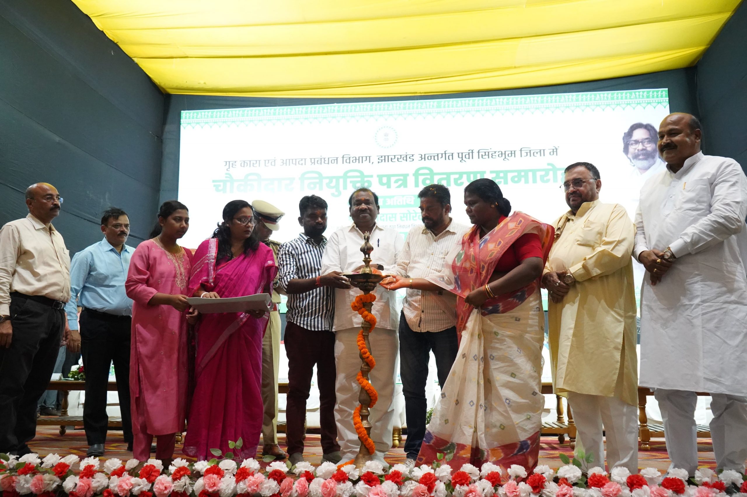 सिदगोड़ा टाउन हॉल में शिक्षा मंत्री रामदास सोरेन ने स्थानीय जनप्रतिनिधि व प्रशासनिक अधिकारियों की मौजूदगी में जिला में नवनियुक्त किये गये 224 चौकीदार अभ्यार्थियों के बीच बुधवार को नियुक्ति पत्र का वितरण किया. नियुक्ति पत्र मिलते ही अभ्यर्थियों के चेहरे खिल उठे. नौकरी पाकर उत्साहित युवाओं ने एक स्वर में मुख्यमंत्री एवं प्रशासनिक पदाधिकारियों के प्रति आभार जताया. मंत्री रामदास सोरेन ने अभ्यर्थियों को उनके उज्ज्वल भविष्य की शुभकामनाएं दी और कहा कि राज्य सरकार युवाओं के सपने को साकार करने के लिए प्रयत्नशील है. रोजगार – सरकारी नौकरी पाना हर युवा का सपना होता है, सरकार के संकल्प का नतीजा है कि पूर्वी सिंहभूम के 224 युवाओं को चौकीदार के पद पर नियुक्त किया गया. उन्होंने अपील करते हुए कहा कि जो भी दायित्व आप सभी को मिलेगा उसका कर्तव्यनिष्ठा से निर्वह्न करें. सरकार जमीनी स्तर पर प्रशासन को सक्रिय करने का प्रयास कर रही है. महिलाओं, गरीबों, बेरोजगारों, युवाओं को सशक्त करने का कार्य किया जा रहा है. संवेदनशीलता के साथ सरकार राज्य को आगे बढ़ाने का काम कर रही है. उन्होंने सभी जिलावासियों से अपील करते हुए कहा कि वे अपने बच्चों को नियमित स्कूल भेजें और शिक्षित बनायें, शिक्षा से ही समाज में बदलाव संभव है. हर झारखंडी को शिक्षित बनना होगा. उन्होंने युवाओं से समाज के प्रति जवाबदेह बनने की अपील की.चौकीदारों की नियुक्ति सरकार का सराहनीय पहल : सरयू