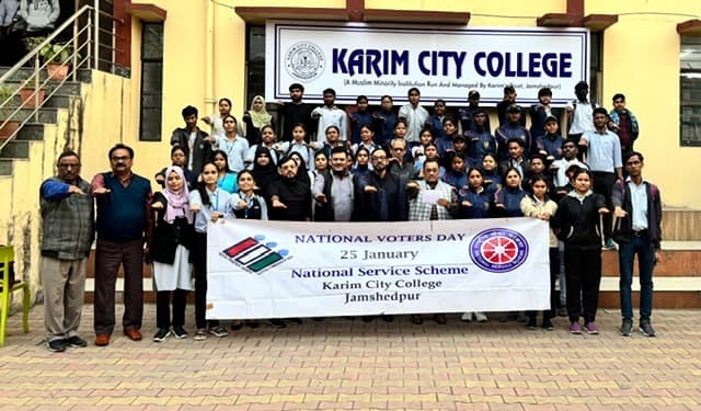करीम सिटी कॉलेज के साकची प्रांगण में राष्ट्रीय सेवा योजना इकाई द्वारा शनिवार को राष्ट्रीय मतदान दिवस आयोजित किया गया. इस दौरान स्वयंसेवकों द्वारा मतदान के महत्व के प्रति जागरूकता लाने का संकल्प लिया गया.इस शपथ ग्रहण समारोह में करीम सिटी कॉलेज के प्रिंसिपल डॉ मोहम्मद रियाज, एनएसएस कार्यक्रम अधिकारी डॉक्टर आले अली, मेजर फकीरुद्दीन अहमद,अनवर शहाब, डॉ सैयद साजिद परवेज, डॉ तनवीर काजमी, परीक्षा प्रमुख बीएन त्रिपाठी और एनएसएस समन्वयक सैयद साजिद परवेज समेत कई अन्य एनएसएस स्वयंसेवक उपस्थित थे.डिस्क्लेमर: यह प्रभात खबर समाचार पत्र की ऑटोमेटेड न्यूज फीड है. इसे प्रभात खबर डॉट कॉम की टीम ने संपादित नहीं किया है