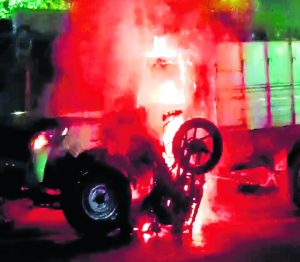 दुर्घटना में बाइक जलकर खाक