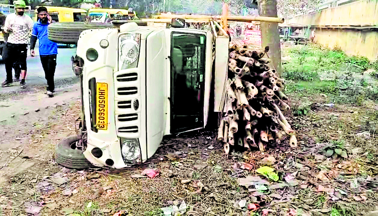 टाटानगर रेलवे स्टेशन मेन रोड महुआ गली के पास ट्रैफिक चेकिंग के दौरान एक बांस लदा पिकअप वैन पलट गया. पिकअप वैन पलटने से उस पर बैठे दो लोगों को चोट लगी. गाड़ी से बाहर निकालने के बाद दोनों का इलाज कराया गया. साथ ही क्रेन की मदद से पिकअप वैन को सीधा किया गया. घटना बुधवार दोपहर की है. आरोप है कि स्टेशन के पास चल रहे चेकिंग के दौरान पुलिसकर्मी ने उनकी गाड़ी को रोका. उसी दौरान पीछे से एक बड़े वाहन के आने पर जबरन उसे किनारे करने को बोला गया. इस दौरान उनकी गाड़ी का एक चक्का सड़क से नीचे उतर गया. गाड़ी पर सामान लोड होने के कारण गाड़ी पलट गयी.वहीं, चेकिंग कर रहे पुलिसकर्मी ने बताया कि पिकअप वैन में बांस और टेंट हाउस का सामान लोड था. पिकअप ओवरलोड था. जब उसे रोकने के लिए कहा गया, तो वह गाड़ी लेकर भागने लगा. इसी दौरान गाड़ी अनियंत्रित होकर पलट गयी. उसके बाद क्रेन की मदद से उसे सीधा करवाया गया.