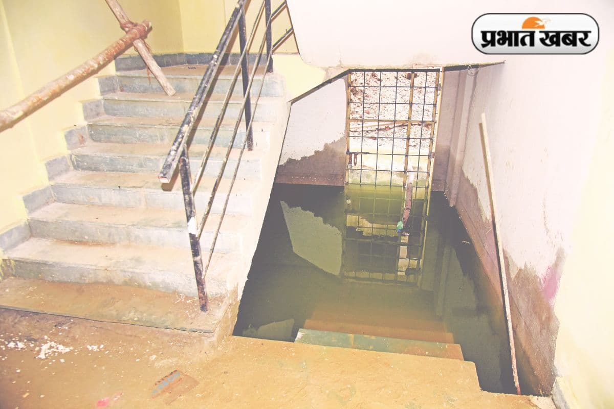 भवन निर्माण के लिए योजना बनाते समय जमीन की उचित जांच नहीं होने, जल निकासी, ड्रेनेज सिस्टम की व्यवस्था अब तक नहीं होने, भवन का निर्माण 10 से 15 फीट नीचे गड्ढे में होने की वजह से बारिश के दौरान पानी भरने की समस्या उत्पन्न हो गयी है. अब आनन-फानन में मोटर लगाकर पानी निकाला जा रहा है. एक फ्लोर पर 36 फ्लैट हैं.