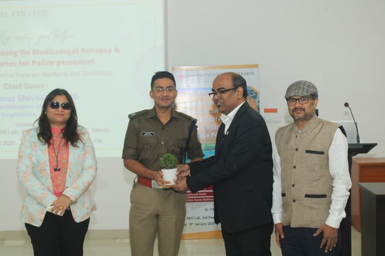 फॉरेंसिक मेडिसिन और टॉक्सिकोलॉजी विभाग, मणिपाल टाटा मेडिकल कॉलेज ने रविवार को पुलिस प्रशिक्षण कार्यशाला का आयोजन किया. मणिपाल टाटा मेडिकल कॉलेज (एमटीएमसी) में फोरेंसिक मेडिसिन और टॉक्सिकोलॉजी विभाग ने पुलिस अधिकारियों के लिए मेडिकोलीगल ऑटोप्सी और आग्नेयास्त्र चोटों पर प्रशिक्षण दिया गया.इस एक दिवसीय कार्यक्रम ने फोरेंसिक जांच के महत्वपूर्ण क्षेत्रों में कानून प्रवर्तन अधिकारियों के कौशल को बढ़ाने के लिए विशेषज्ञता की जानकारी दी गयी. इस कार्यशाला में लगभग 30 पुलिस अधिकारी मौजूद थे. उन्हें मेडिकोलीगल ऑटोप्सी, आग्नेयास्त्र चोटों की व्याख्या, श्वासावरोध के मामलों की जांच और अपराध स्थल विश्लेषण में व्यावहारिक ज्ञान की जानकारी दी. इसके साथ ही हाथों पर सीखने के महत्व को पहचानते हुए विभाग ने अत्याधुनिक कौशल प्रयोगशाला के भीतर चार कृत्रिम अपराध दृश्य बनाये. 2022 बैच के आईपीएस अधिकारी ऋषभ त्रिवेदी ने कार्यशाला में उपस्थित थे. वे फोरेंसिक विज्ञान और कानून प्रवर्तन के बीच की खाई को पाटने में इसके महत्व को रेखांकित किया. इस दौरान जमशेदपुर के सिटी एसपी कुमार शिवाशीष ने जांच सटीकता बढ़ाने और न्याय सुनिश्चित करने में इस तरह के प्रशिक्षण की महत्वपूर्ण भूमिका पर प्रकाश डाला. तीन फोरेंसिक विशेषज्ञ, उनके डीन डॉ प्रदीप कुमार के मार्गदर्शन में एमटीएमसी के कार्यक्रम के दौरान संकाय के रूप में कार्य किया. इस दौरान मणिपाल टाटा मेडिकल कॉलेज के कई प्रोफेसर सहित अन्य लोग उपस्थित थे.डिस्क्लेमर: यह प्रभात खबर समाचार पत्र की ऑटोमेटेड न्यूज फीड है. इसे प्रभात खबर डॉट कॉम की टीम ने संपादित नहीं किया है