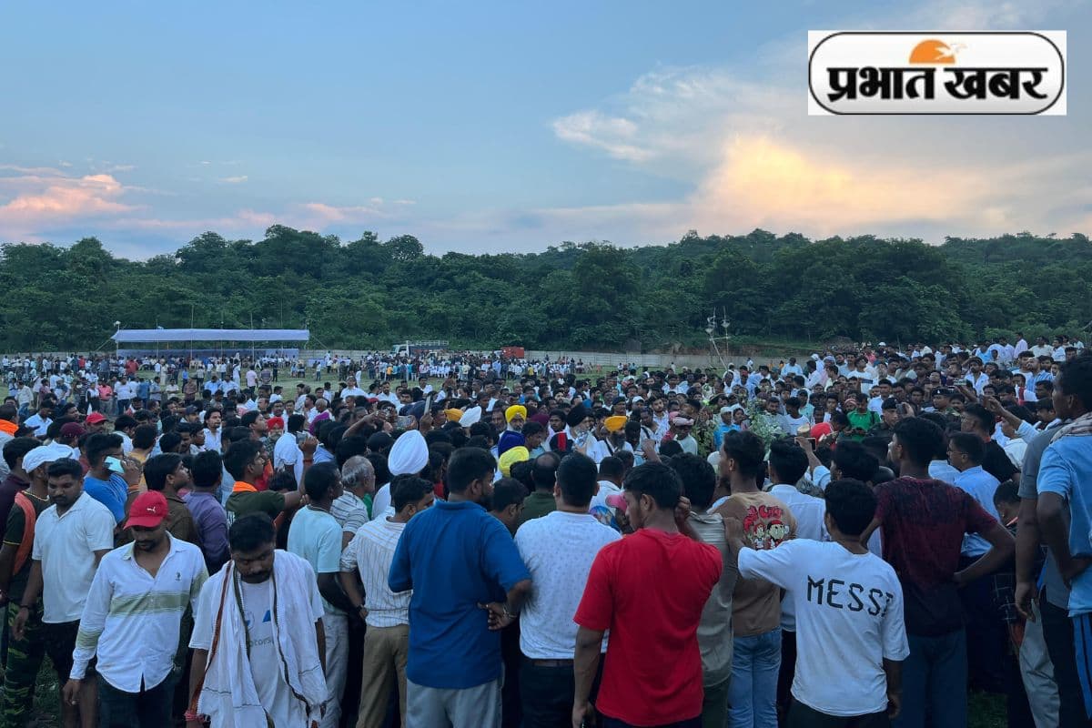 रामदास सोरेन के अंतिम संस्कार के लिए जमशेदपुर के घोड़ाबांधा में पहुंची भीड़. फोटो : प्रभात खबर