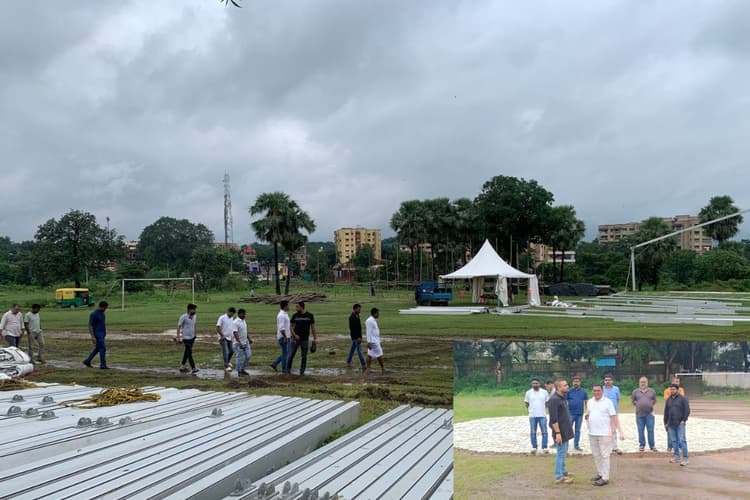 कम्पुटा मैदान में बनाया जा रहा अस्थायी हेलीपैड