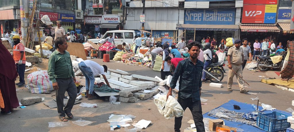 फुटपाथ से हटाये गये दुकानदार, पूरे बाजार में चला सफाई अभियान, 11 ट्रिप निकला कचरा