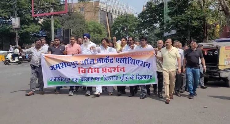 Jamshedpur News : किराया वृद्धि के खिलाफ सड़क पर उतरे सैरात दुकानदार