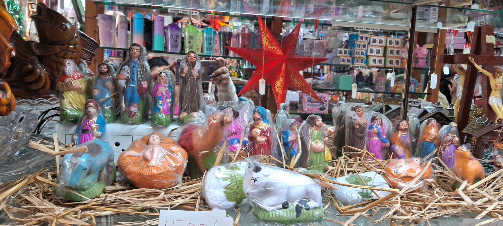 सभी चीजें दिल्ली और मुंबई से मंगायी गयी हैं. कुछ चीजें कोलकाता की भी हैं. इस बार रेडियम का झालर खूब बिक रहा है, जो अंधेरे में जलता हुआ दिखता है. रेडीमेड चरनी है, जिसकी कीमत 250 से लेकर 500 रुपये तक है. स्टार 120 -350 रुपये तक है. बच्चियों के लिए हेयर बैंड है, जिसकी कीमत 70 रुपये है. ड्रेस 180 से लेकर 600 रुपये तक के हैं.