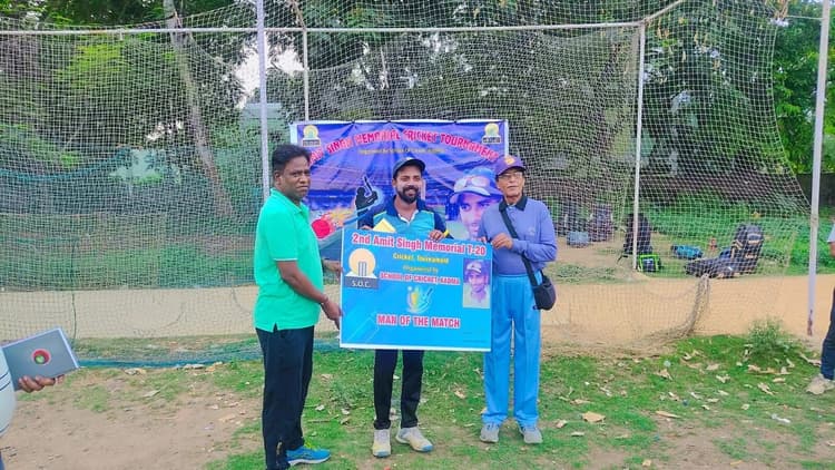 जमशेदपुर. लिंक रोड स्थित एलआइसी मैदान में रविवार से अमित सिंह मेमोरियल टी-20 क्रिकेट टूर्नामेंट की शुरुआत हुई. स्कूल ऑफ क्रिकेट की मेजबानी में आयोजित इस प्रतियोगिता के पहले मैच में एमआर स्पोर्ट्स एकादश की टीम ने एलिट एकादश को 153 रन से हराया. एमआर स्पोर्ट्स एकादश की टीम ने पहले बल्लेबाजी करते हुए 20 ओवर में छह विकेट पर 261 रन बनाये. रवि शर्मा ने 67, प्रतीक भगत ने 43 रनों की पारी खेली. प्रिंस और ऋतिक ऋषि ने दो-दो विकेट लिये. जवाब में एलिट एकादश की टीम 13 ओवर में दस विकेट पर 108 रन ही बना सकी. ऋतिक ऋषि ने 64 रनों की पारी खेली. अंबुज कुमार ने तीन और कुणाल कुमार ने दो विकेट लिये. रवि शर्मा प्लेयर ऑफ द मैच रहे. मुख्य अतिथि राकेश कुमार और राजीव नायर ने रवि को पुरस्कृत किया.
