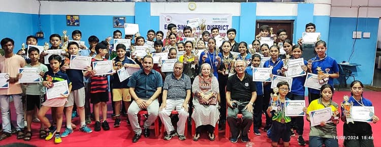 जमशेदपुर. पूर्वी सिंहभूम जिला टेबल टेनिस एसोसिएशन की ओर से जेआरडी टाटा स्पोर्ट्स कॉम्प्लेक्स में आयोजित इंटर स्कूल टेबल टेनिस प्रतियोगिता सोमवार को संंपन्न हो गया. प्रतियोगिता में जेएच तारापोर की अर्चिता डे ने शानदार प्रदर्शन करते हुए दोहरा खिताब अपने नाम किया. अर्चिता डे ने अंडर-17 बालिका एकल वर्ग के फाइनल में जुस्को स्कूल कदमा की परलीन को 3-0 से मात दी. अंडर-19 बालिका एकल वर्ग के फाइनल में अर्चिता डे ने जाह्नवी प्रसाद को हराकर खिताब जीता. बालक अंडर-19 आयु वर्ग में डीएवी के अतुल रंजन विजेता व सौमिल उपविजेता रहे. अंडर-17 बालक वर्ग में भी अतुल रंजन विजेता व सौमिल उपविजेता बने. अंडर-14 बालिका वर्ग के फाइनल में हॉली क्रॉस की स्वर्णाली ने जेएएच तारापोर की स्नेहा को 3-2 से हराया. अंडर-14 बालक वर्ग में सिद्धांत पंडा विजेता व शिवेन गांगुली उपविजेता रहे. विजेताओं को पूर्वी सिंहभूम जिला टेबल टेनिस संघ के संरक्षक ओपी मिश्रा और उनकी पत्नी कुसुम मिश्रा ने पुरस्कृत किया.